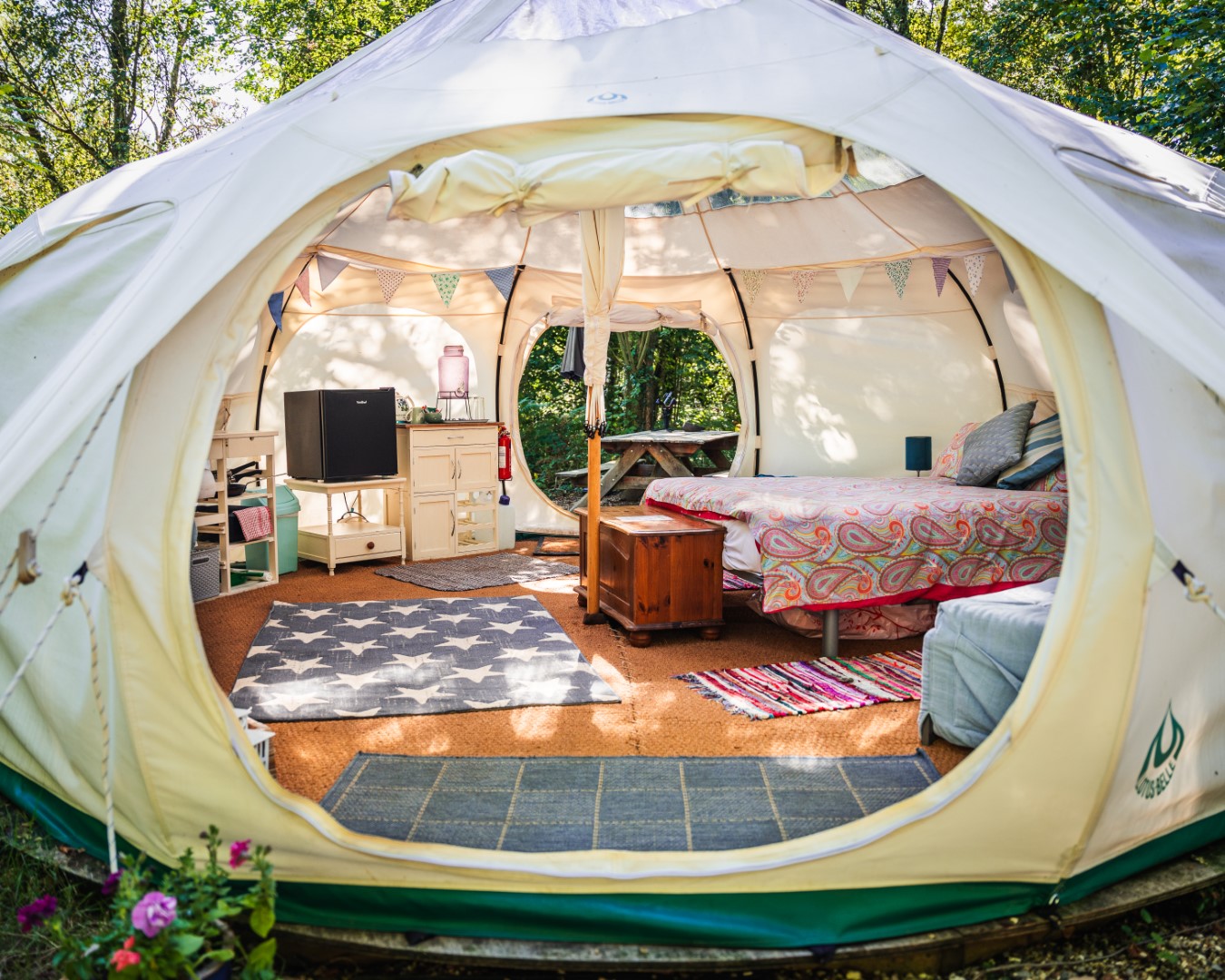 A Beautiful 5m Bell Tent with Stargazing Roof. Perfect for a family retreat.